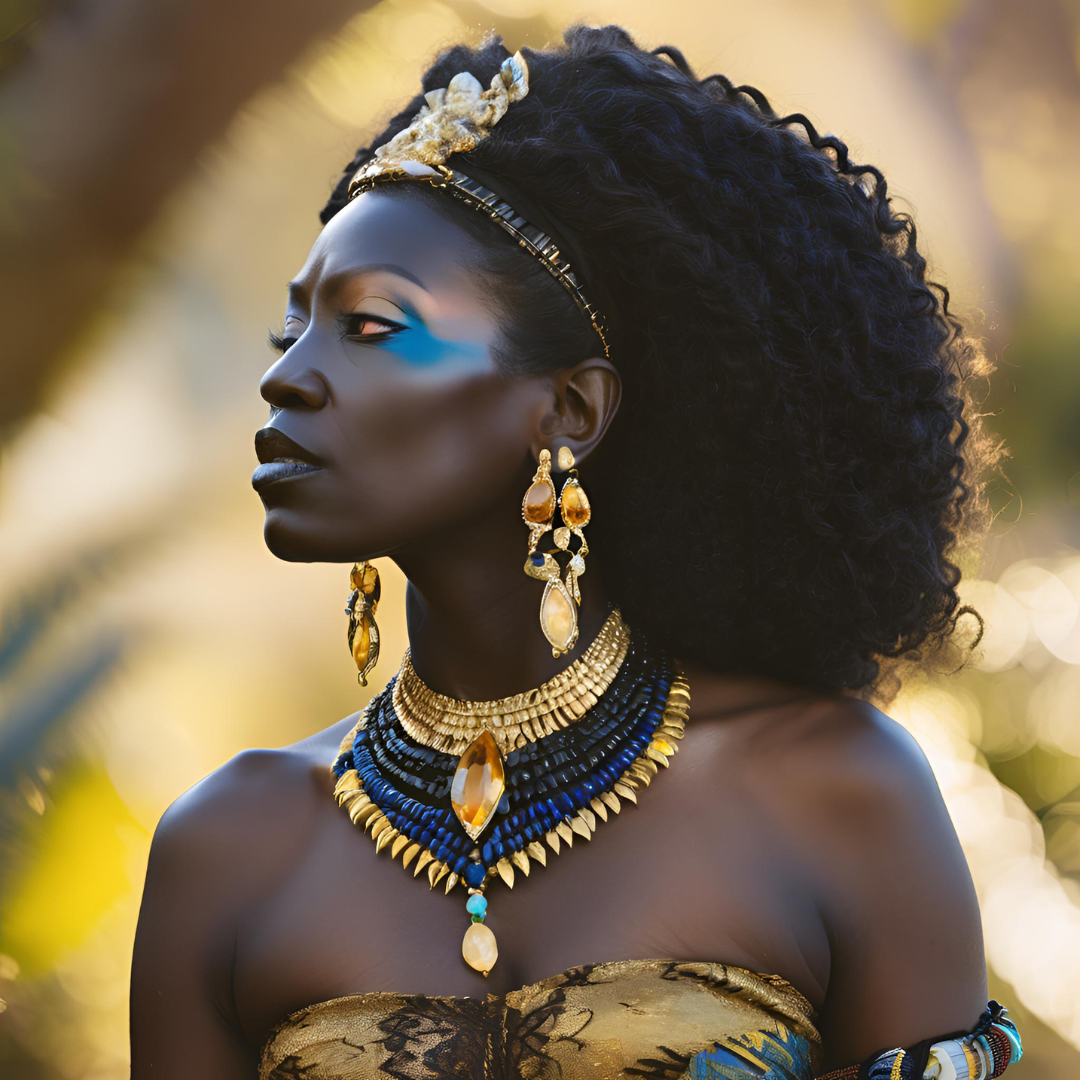 The Calafia Collection is a celebration of strength, resilience, and self-mastery. Inspired by the powerful Black warrior queen, Queen Calafia, this collection honors her legacy with designs that embrace Regal strength, Radiant energy, and Reclaimed power.